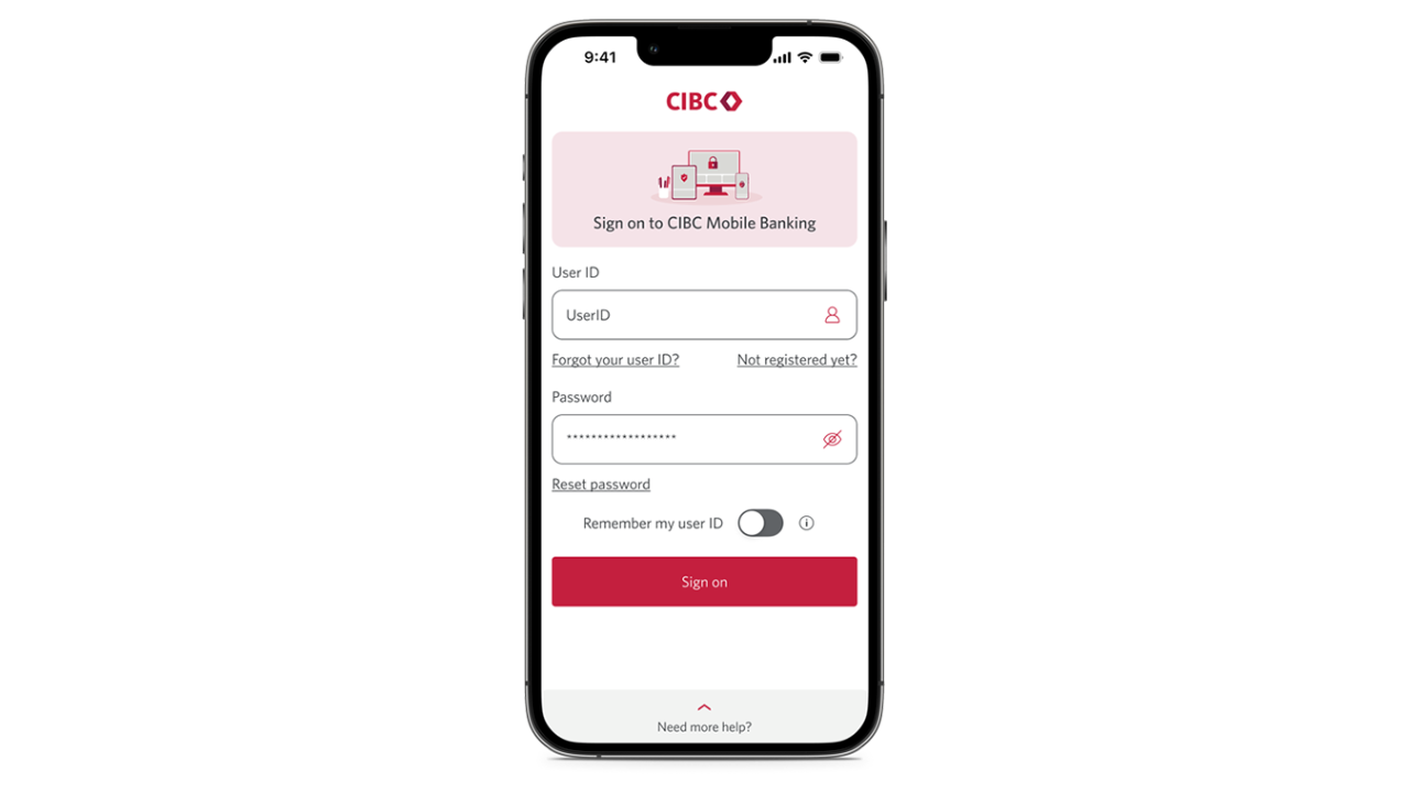 - On cibc.com/US or the mobile app, enter your User ID and password.